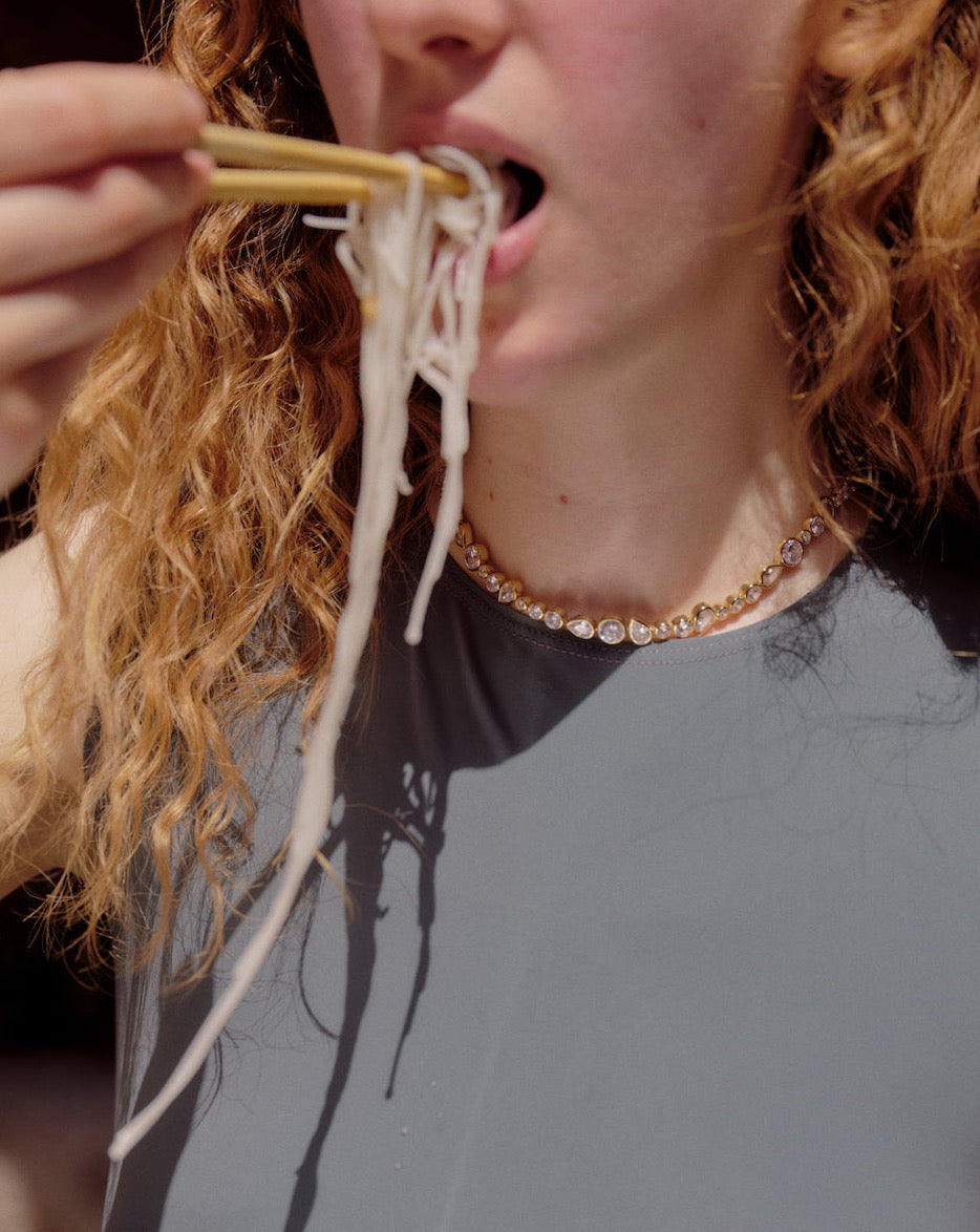 The brand uses primarly recycled materials and it’s signature pieces gently roll against the tide of convention - using sculptural forms that weave, loop, twist and flow.