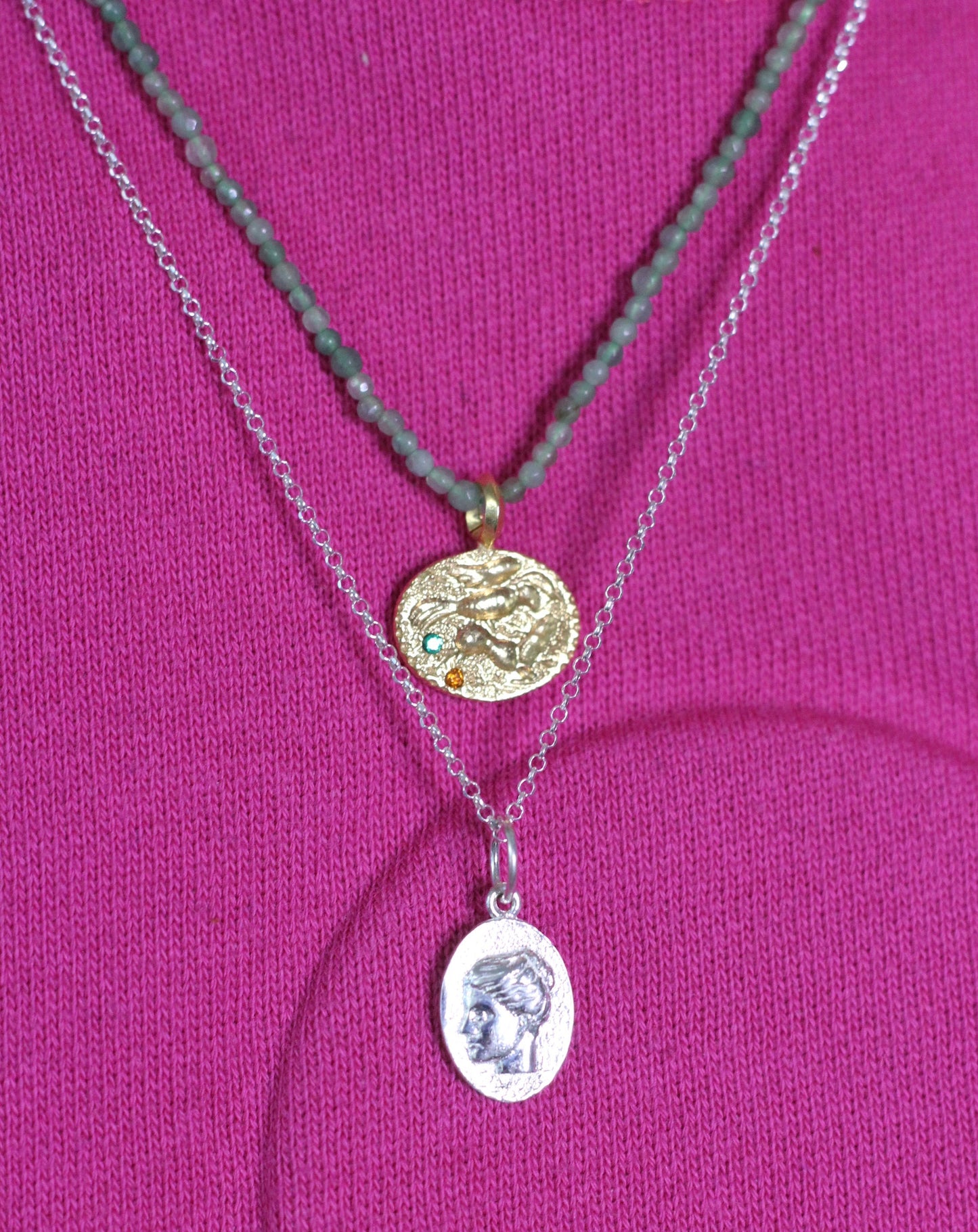 Material: aventurine semiprecious stones and gold plated 925 pendant